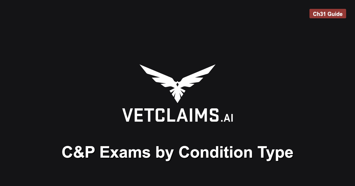 Detailed guide to C&P exams by condition type. Learn what to expect for PTSD, orthopedic, hearing, sleep apnea, TBI, and other evaluations.